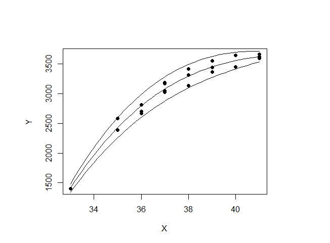 # summary(resLine) # optional R display of curve fit results